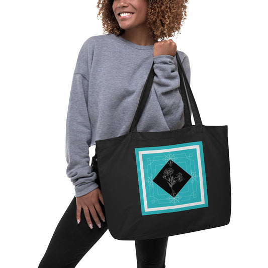 Dainty Daisy Flowers Black Tote Bag Large Size
