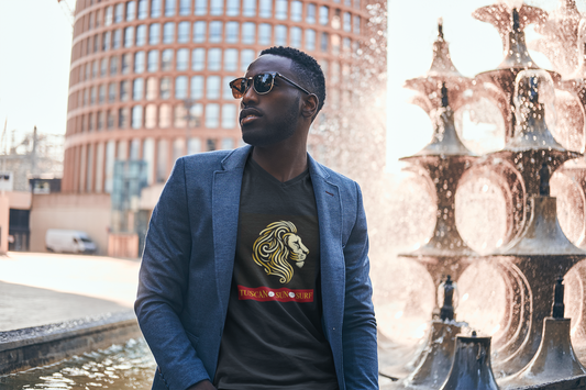 Lion Face V-Neck T-Shirt in Black - Unisex